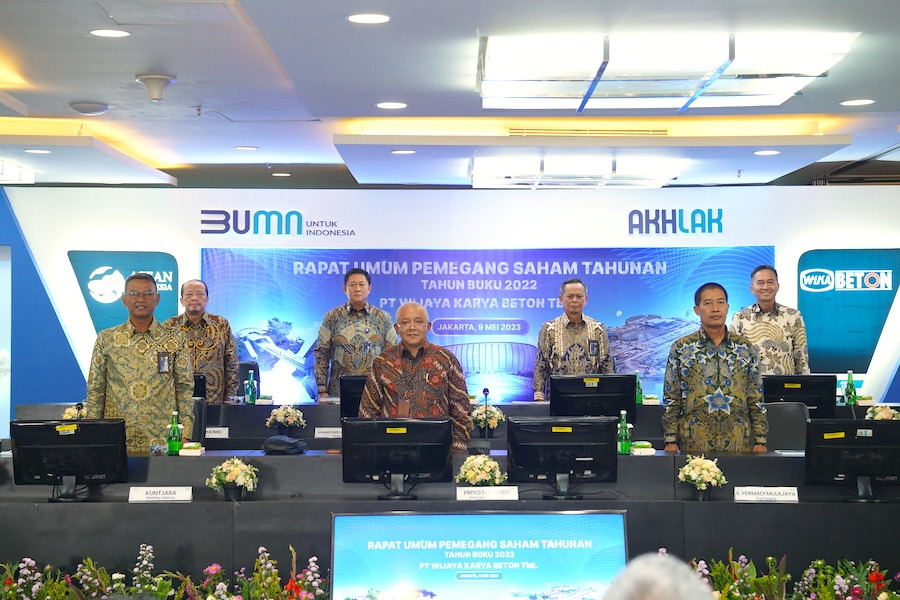 PT Wijaya Karya Beton Tbk. (WIKA Beton) menggelar Rapat Umum Pemegang Saham Tahunan (RUPST) Tahun Buku 2022 pada Selasa, 9 Mei 2023 di WIKA Tower 2, Jakarta. RUPST yang dimulai pukul 14.21 WIB tersebut dihadiri sebanyak 6.001.290.638 saham atau mewakili 68,86% dari 8.715.466.600 saham yang telah dikeluarkan Perseroan dengan mengagendakan 6 (enam) mata acara yakni: